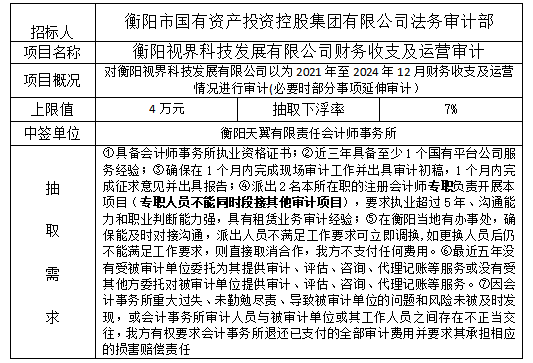 衡陽視界科技發(fā)展有限公司財務(wù)收支及運營審計項目抽取結(jié)果公示